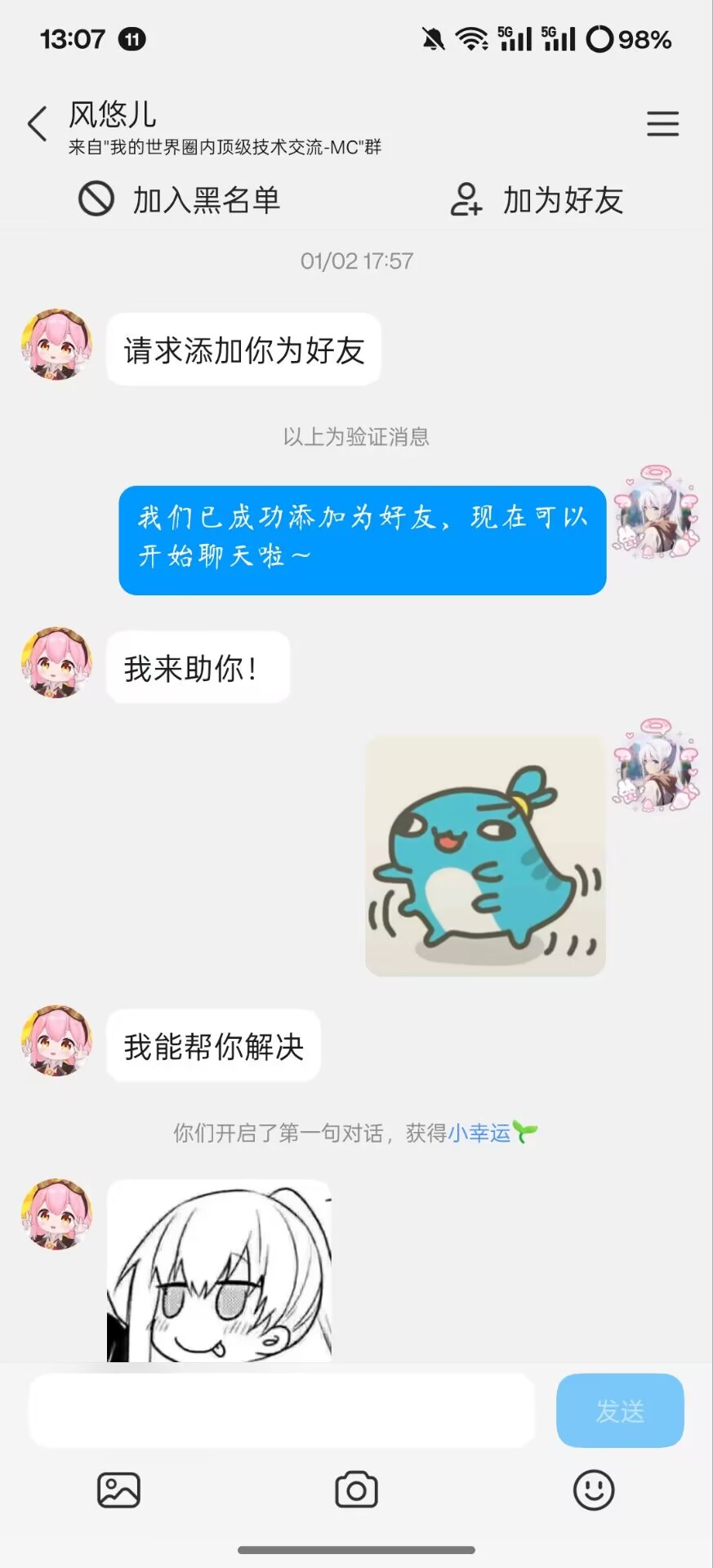 当时我在听风吟群里询问服务器问题,七七从听风吟的群里加我(QianMo)为好友声称他能帮我解决问题