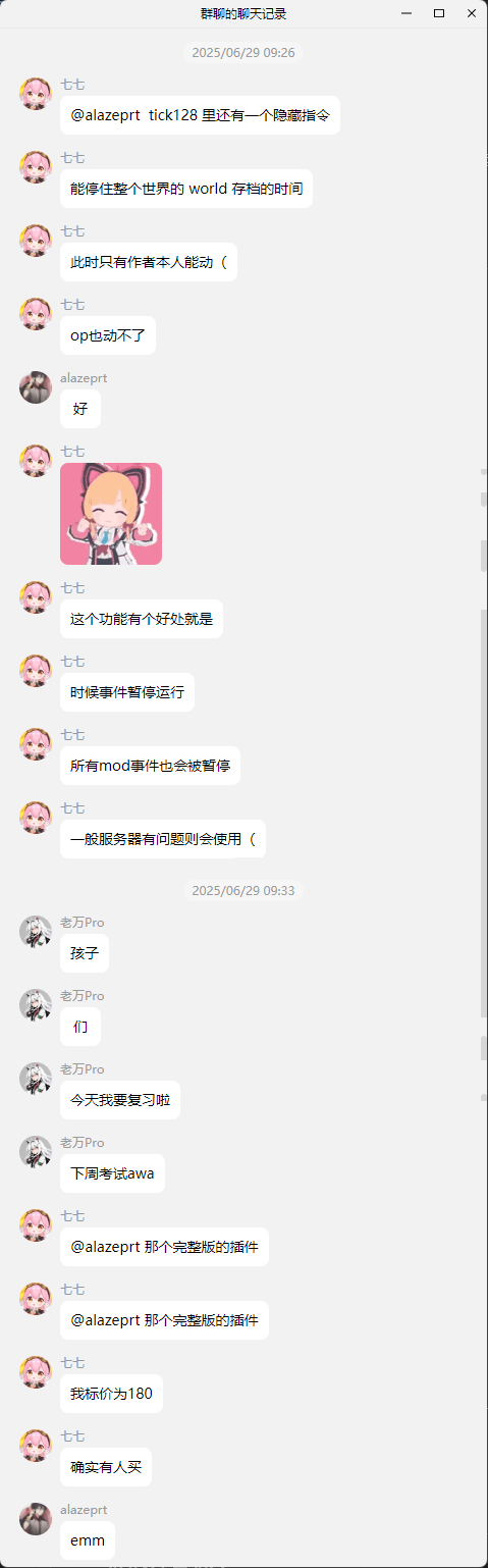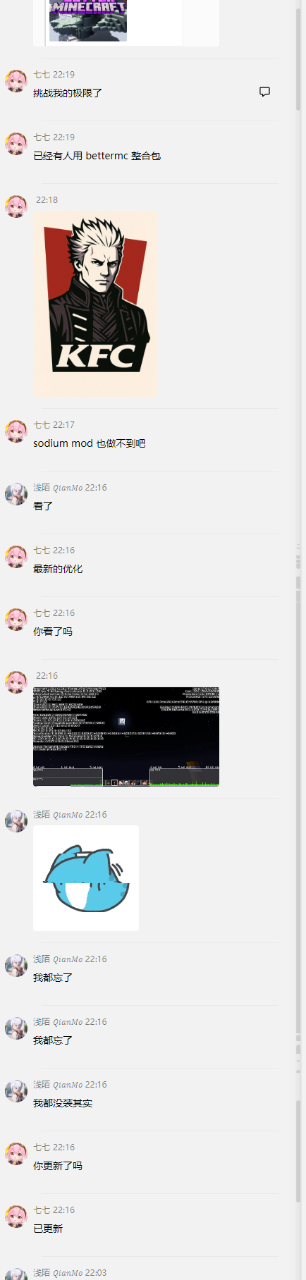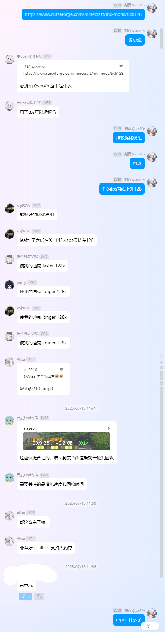 七七仍然沉浸在自己写的 Tick128 模组的优化效果中