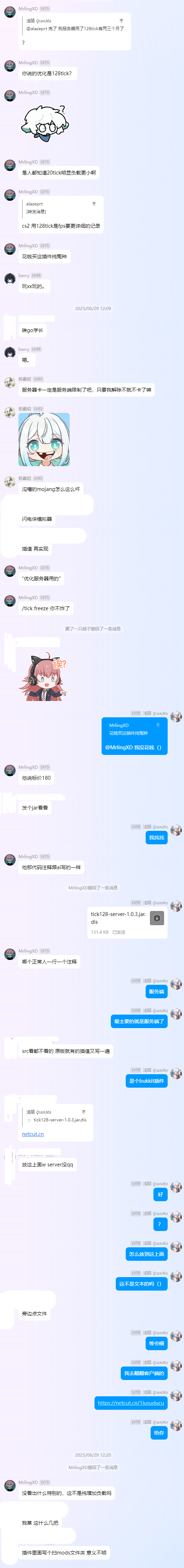 Tick128 是一个旨在将 Minecraft 帧率提升至宇宙速度的“优化”框架,采用“CS2 风格 SubTick 数据模型”,力图用毫无科学依据的伪公式将服务器 tickrate 提升 60%(据说)。