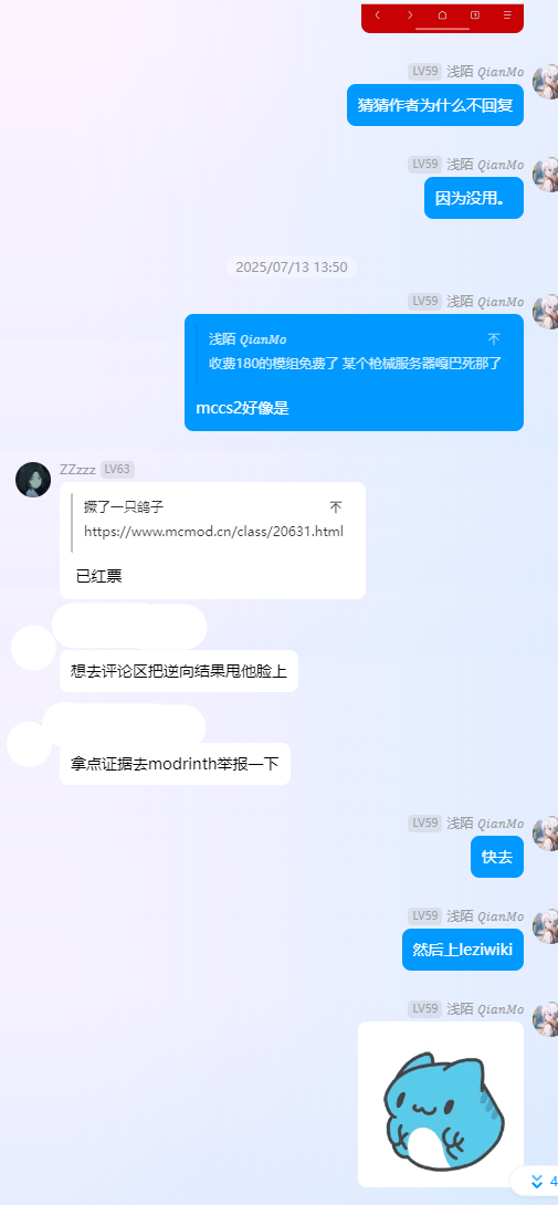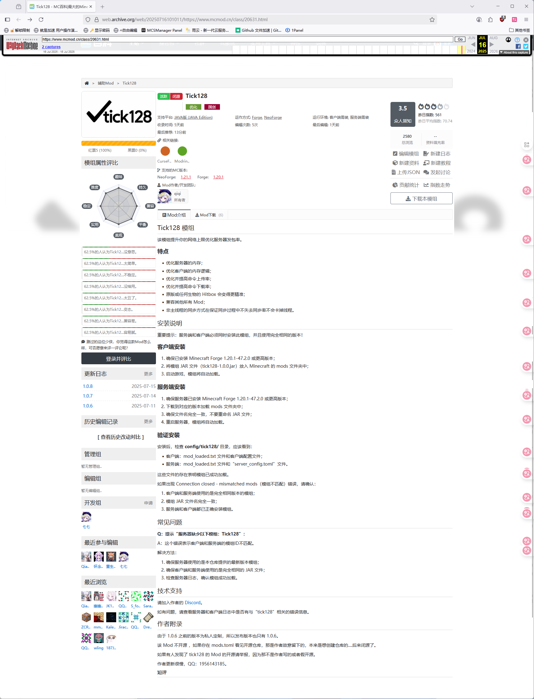 后来 Tick128 不仅免费了还扔到 MCMOD 上了,MC:CS2 服主成功被阴了