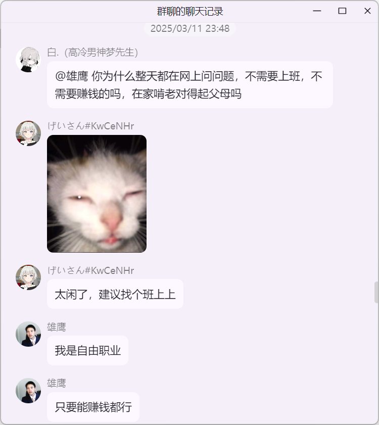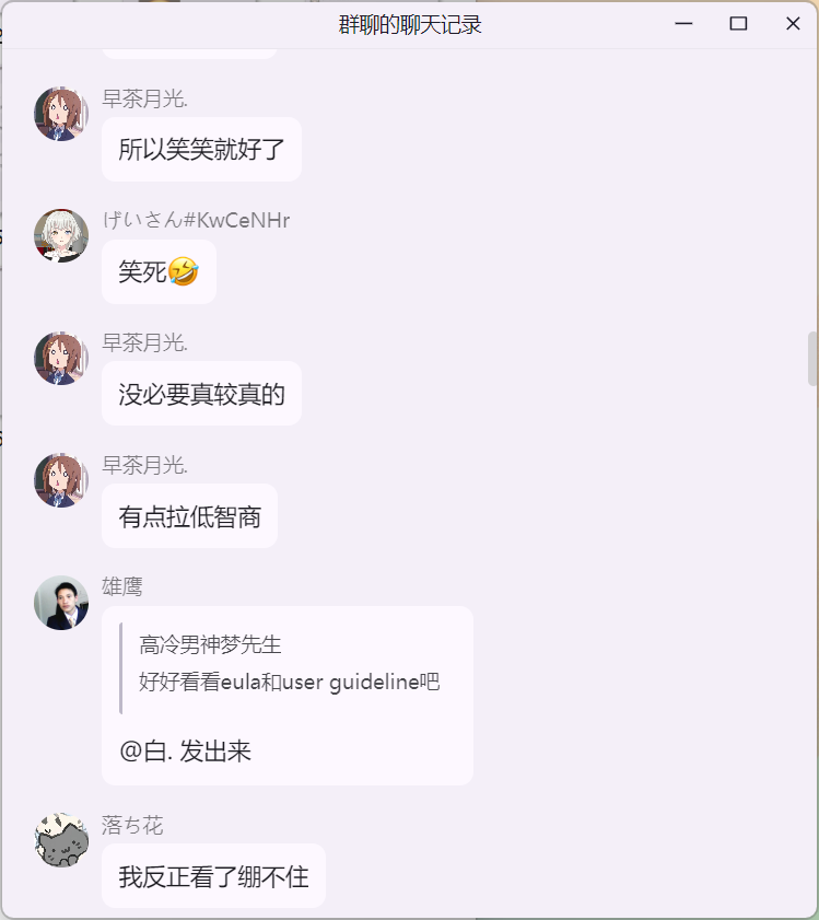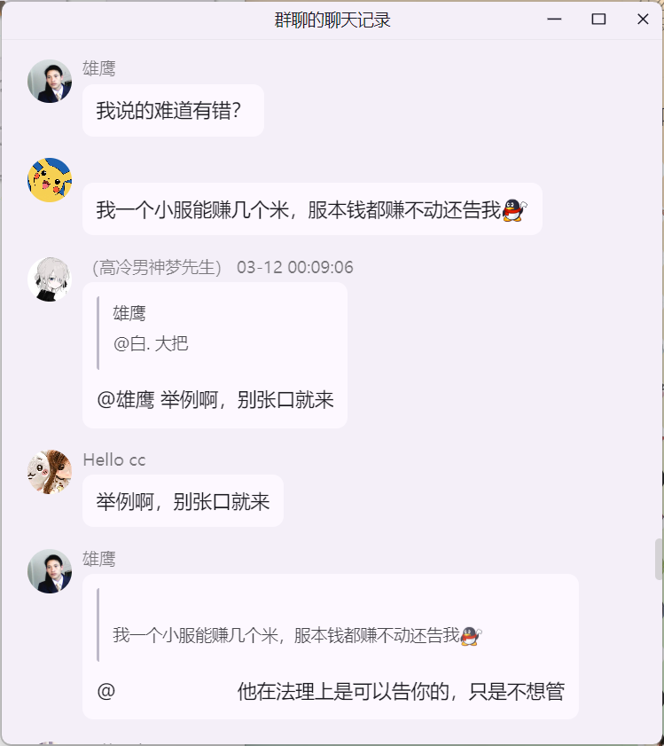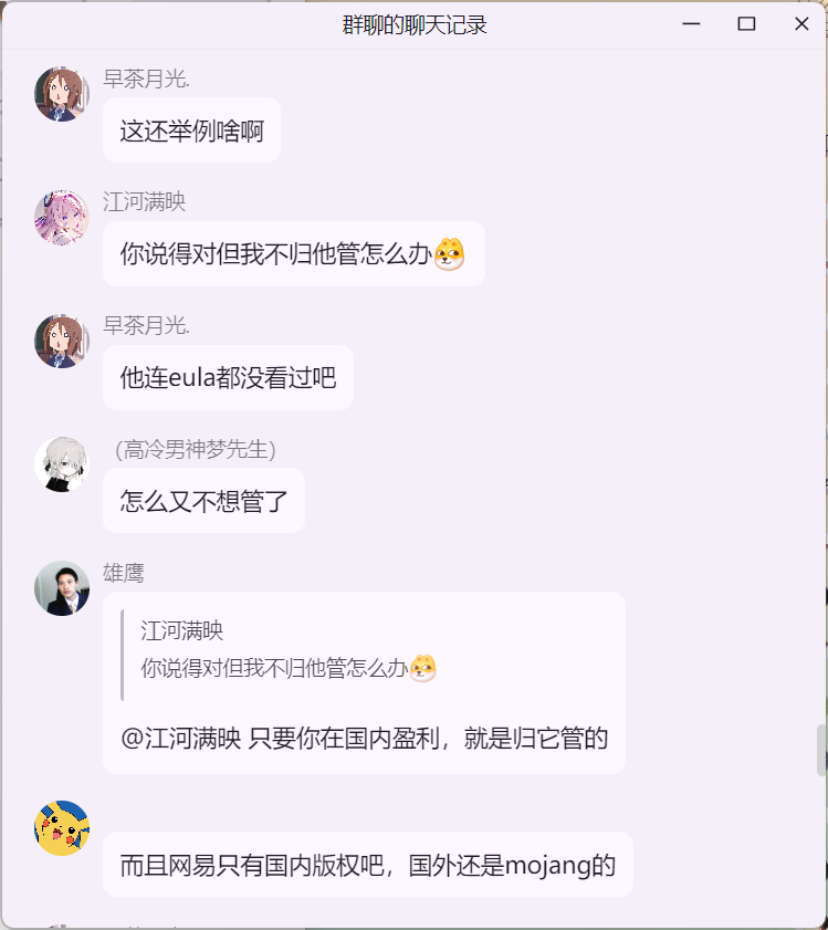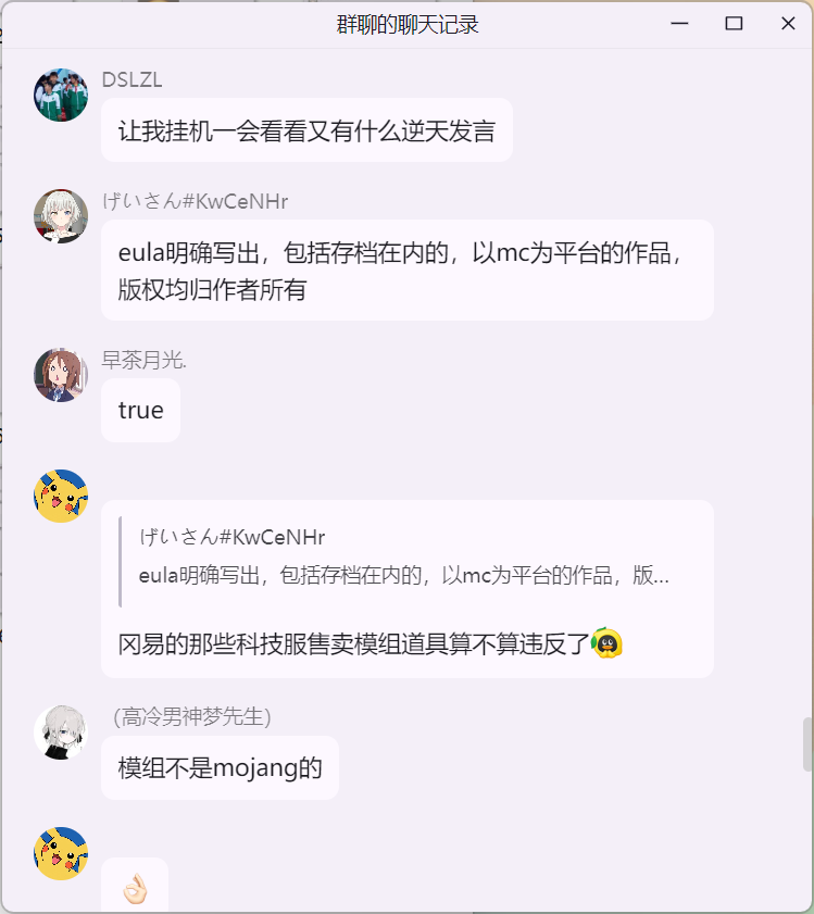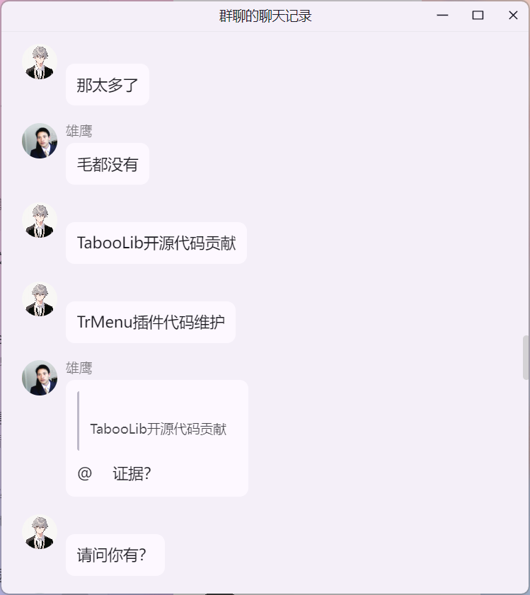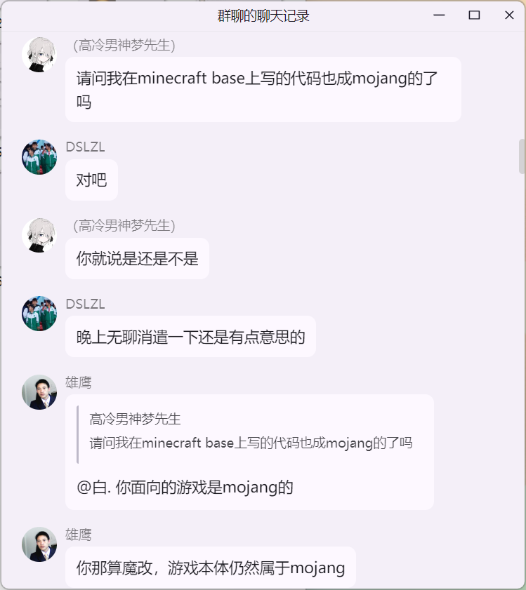 雄鹰大哥在 米饭的 mc 技术交流群 询问 Citizens NPC 插件“免费版 与 付费版”的区别时,白大佬提示雄鹰这里并适合讨论 Citizens 插件,随后发生如下事件